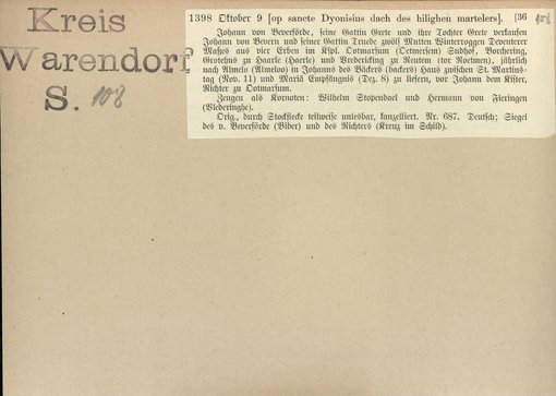 | Bestand | Bd. 2, Heft 2: Kreis Warendorf | alle Regesten |