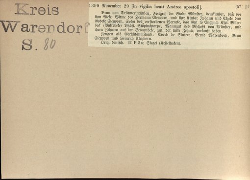 | Bestand | Bd. 2, Heft 2: Kreis Warendorf | alle Regesten |