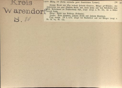 | Bestand | Bd. 2, Heft 2: Kreis Warendorf | alle Regesten |