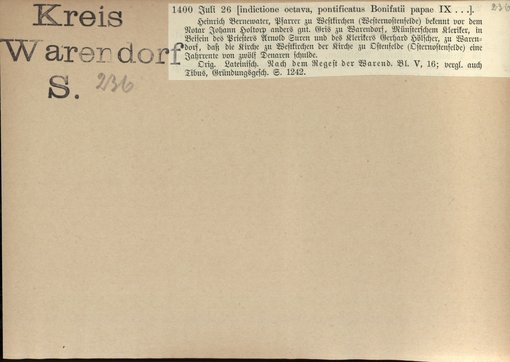 | Bestand | Bd. 2, Heft 2: Kreis Warendorf | alle Regesten |