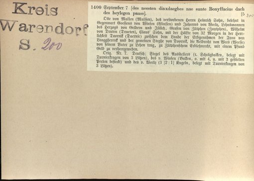 | Bestand | Bd. 2, Heft 2: Kreis Warendorf | alle Regesten |