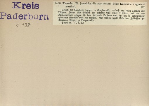 | Bestand | Bd. 3, Heft 2: Kreis Paderborn | alle Regesten |