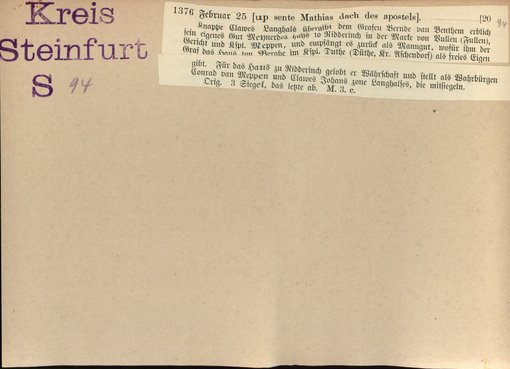 | Bestand | Bd. 1, Heft 4: Kreis Steinfurt | alle Regesten |