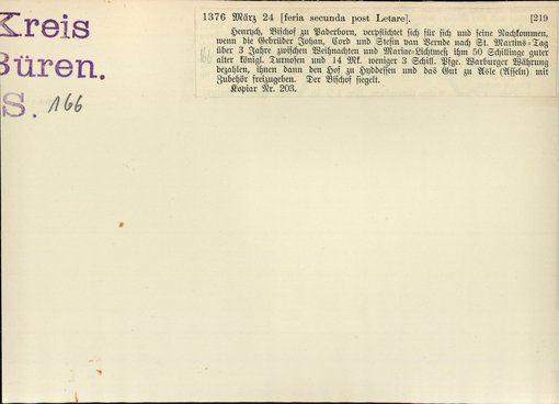 | Bestand | Bd. 3, Heft 1: Kreis Büren | alle Regesten |