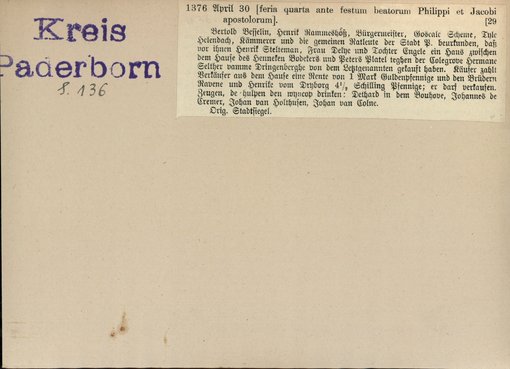 | Bestand | Bd. 3, Heft 2: Kreis Paderborn | alle Regesten |