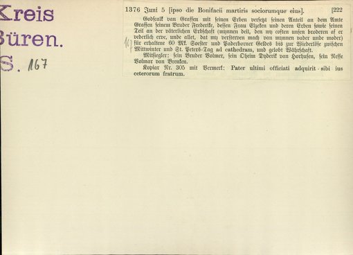 | Bestand | Bd. 3, Heft 1: Kreis Büren | alle Regesten |