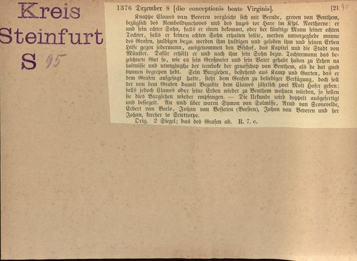 | Bestand | Bd. 1, Heft 4: Kreis Steinfurt | alle Regesten |