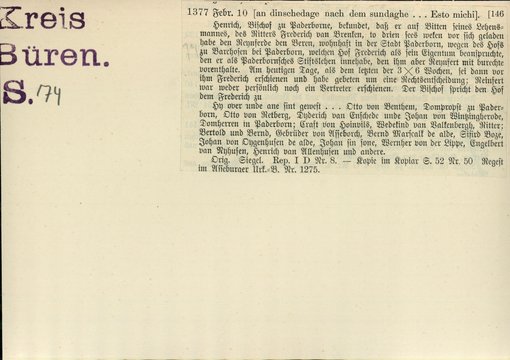 | Bestand | Bd. 3, Heft 1: Kreis Büren | alle Regesten |