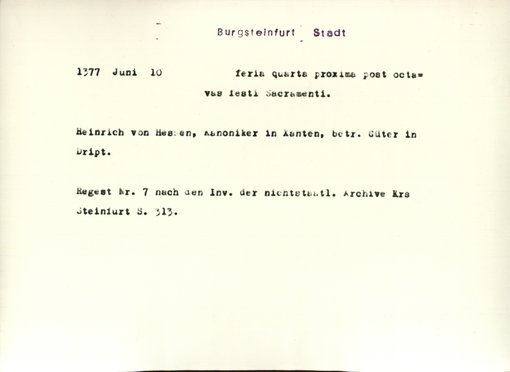 | Bestand | Bestand A, Burgsteinfurt, Urkunden | alle Regesten |