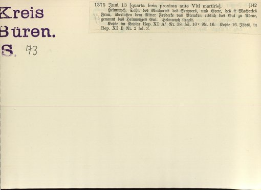 | Bestand | Bd. 3, Heft 1: Kreis Büren | alle Regesten |