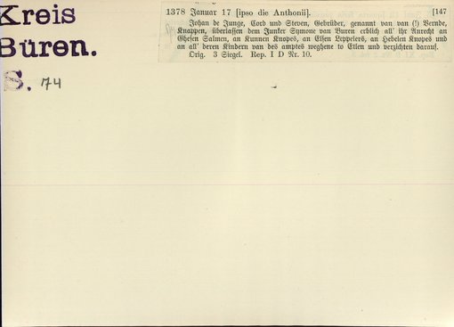 | Bestand | Bd. 3, Heft 1: Kreis Büren | alle Regesten |