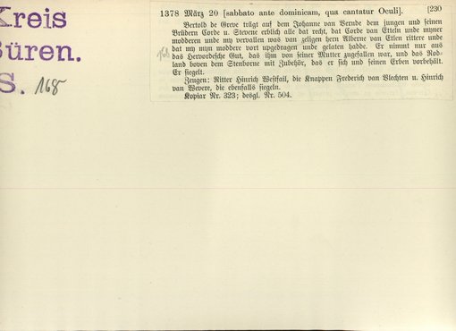 | Bestand | Bd. 3, Heft 1: Kreis Büren | alle Regesten |