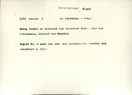 | Bestand | Bestand A, Burgsteinfurt, Urkunden | alle Regesten |