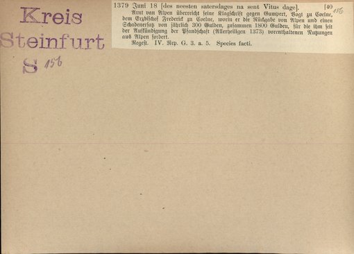 | Bestand | Bd. 1, Heft 4: Kreis Steinfurt | alle Regesten |