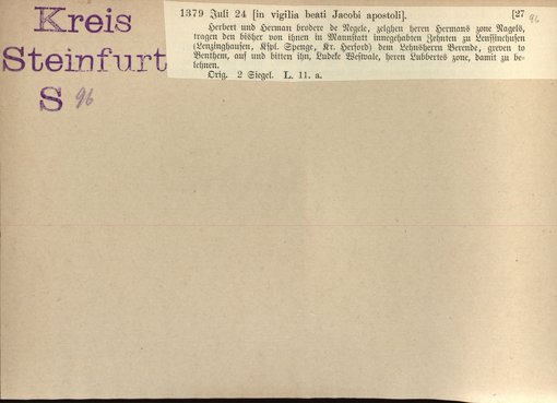 | Bestand | Bd. 1, Heft 4: Kreis Steinfurt | alle Regesten |