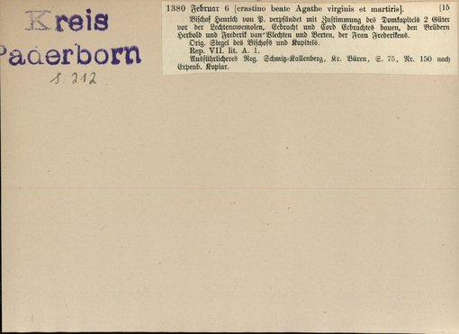 | Bestand | Bd. 3, Heft 2: Kreis Paderborn | alle Regesten |