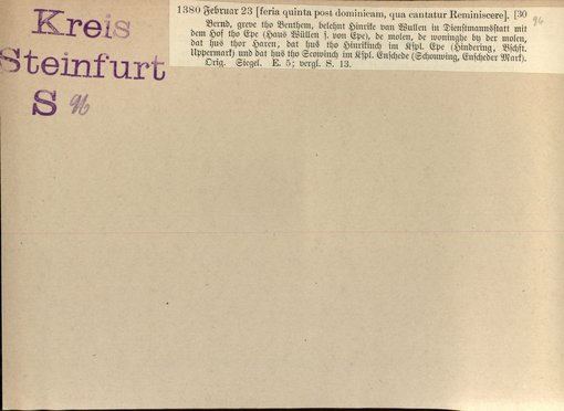 | Bestand | Bd. 1, Heft 4: Kreis Steinfurt | alle Regesten |