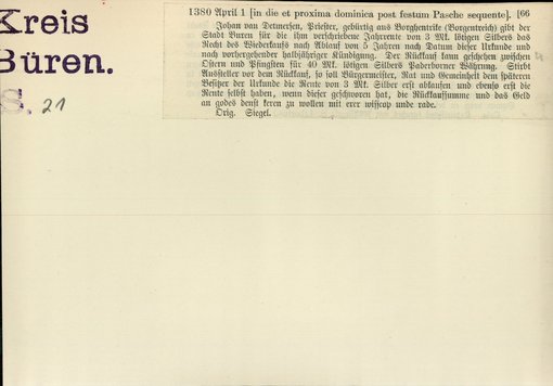 | Bestand | Bd. 3, Heft 1: Kreis Büren | alle Regesten |