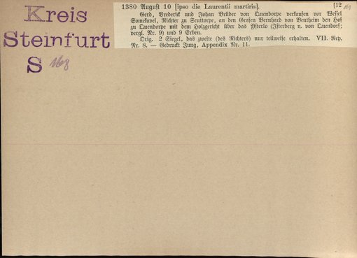 | Bestand | Bd. 1, Heft 4: Kreis Steinfurt | alle Regesten |