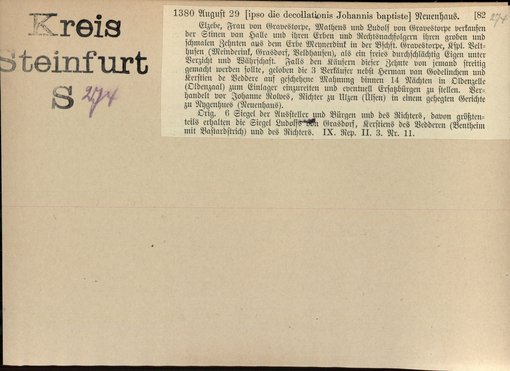 | Bestand | Bd. 1, Heft 4: Kreis Steinfurt | alle Regesten |