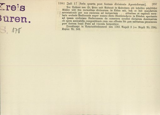 | Bestand | Bd. 3, Heft 1: Kreis Büren | alle Regesten |