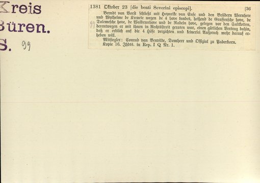 | Bestand | Bd. 3, Heft 1: Kreis Büren | alle Regesten |