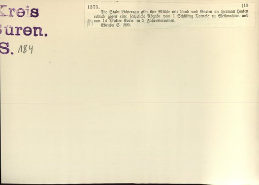| Bestand | Bd. 3, Heft 1: Kreis Büren | alle Regesten |