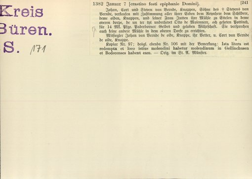 | Bestand | Bd. 3, Heft 1: Kreis Büren | alle Regesten |