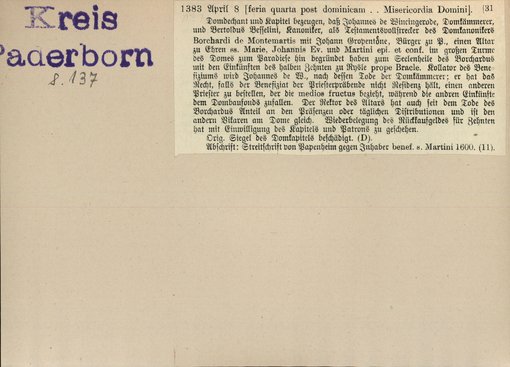 | Bestand | Bd. 3, Heft 2: Kreis Paderborn | alle Regesten |