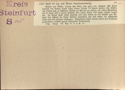 | Bestand | Bd. 1, Heft 4: Kreis Steinfurt | alle Regesten |