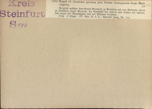 | Bestand | Bd. 1, Heft 4: Kreis Steinfurt | alle Regesten |