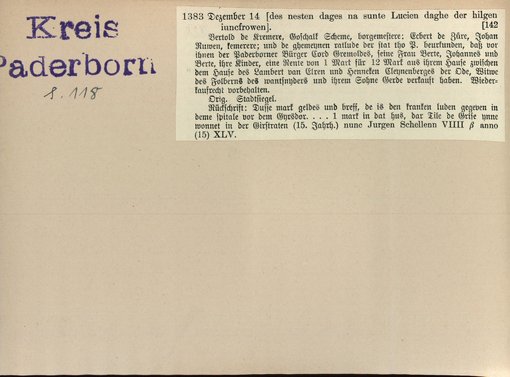 | Bestand | Bd. 3, Heft 2: Kreis Paderborn | alle Regesten |