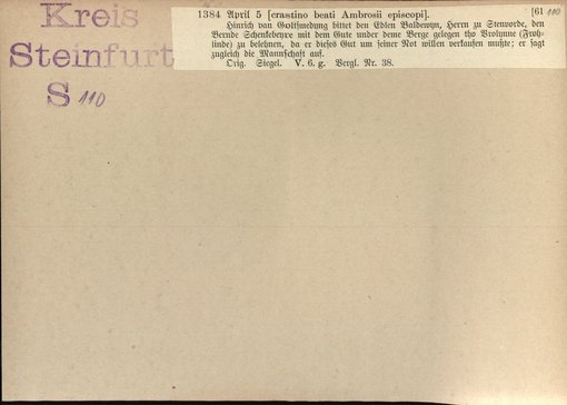 | Bestand | Bd. 1, Heft 4: Kreis Steinfurt | alle Regesten |