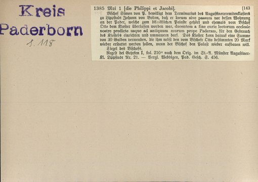 | Bestand | Bd. 3, Heft 2: Kreis Paderborn | alle Regesten |