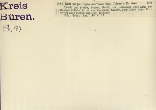 | Bestand | Bd. 3, Heft 1: Kreis Büren | alle Regesten |