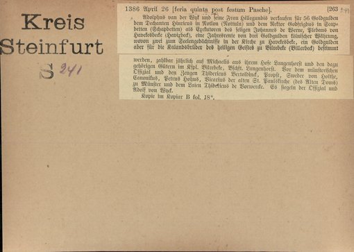 | Bestand | Bd. 1, Heft 4: Kreis Steinfurt | alle Regesten |