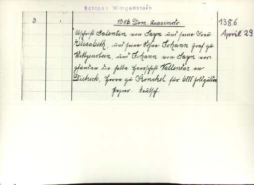 | Benutzungsort | Fürstliches Archiv zu Sayn-Wittgenstein-Hohenstein | |||||||