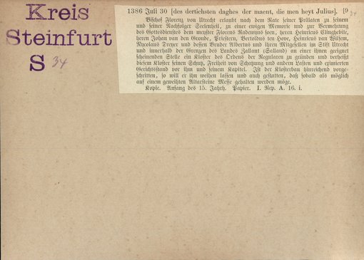 | Bestand | Bd. 1, Heft 4: Kreis Steinfurt | alle Regesten |