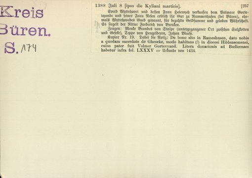 | Bestand | Bd. 3, Heft 1: Kreis Büren | alle Regesten |