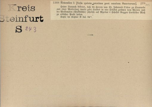 | Bestand | Bd. 1, Heft 4: Kreis Steinfurt | alle Regesten |