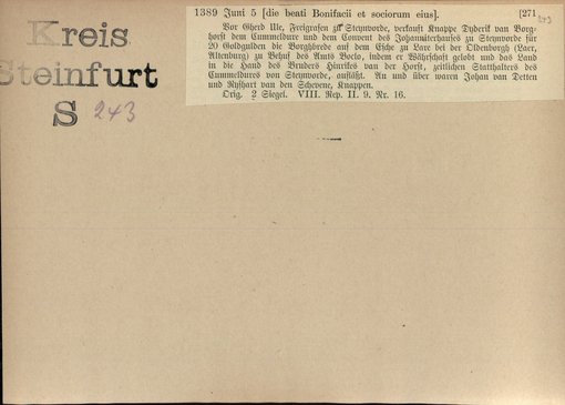 | Bestand | Bd. 1, Heft 4: Kreis Steinfurt | alle Regesten |
