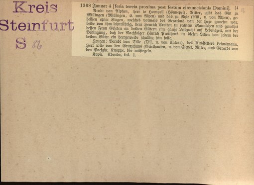 | Bestand | Bd. 1, Heft 4: Kreis Steinfurt | alle Regesten |