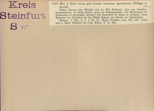| Bestand | Bd. 1, Heft 4: Kreis Steinfurt | alle Regesten |