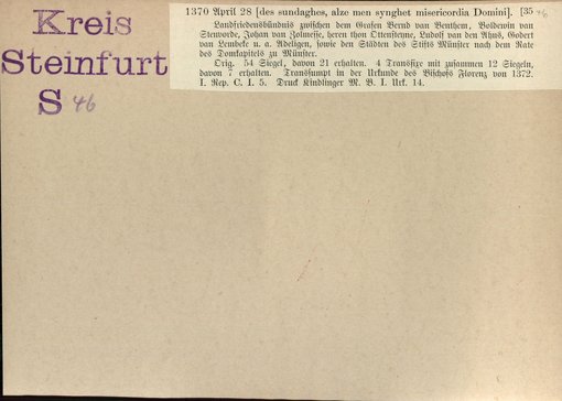 | Bestand | Bd. 1, Heft 4: Kreis Steinfurt | alle Regesten |