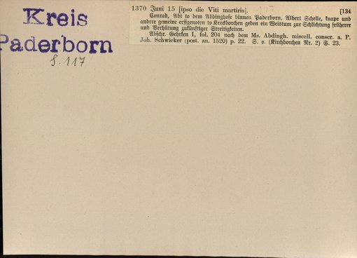 | Bestand | Bd. 3, Heft 2: Kreis Paderborn | alle Regesten |
