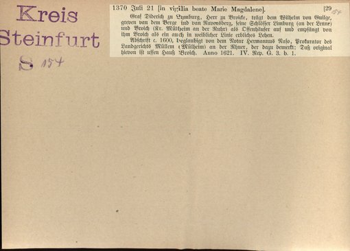 | Bestand | Bd. 1, Heft 4: Kreis Steinfurt | alle Regesten |