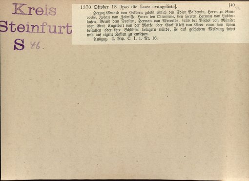 | Bestand | Bd. 1, Heft 4: Kreis Steinfurt | alle Regesten |