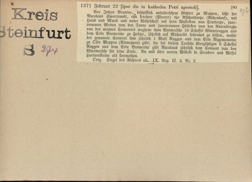 | Bestand | Bd. 1, Heft 4: Kreis Steinfurt | alle Regesten |