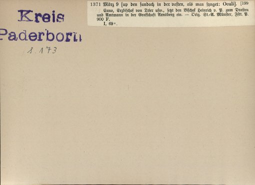 | Bestand | Bd. 3, Heft 2: Kreis Paderborn | alle Regesten |