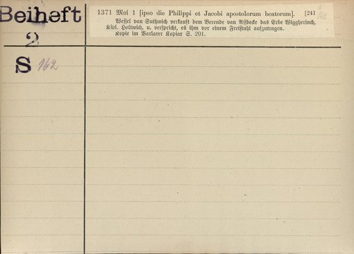 | Bestand | Beibd. 1, Heft 2: Kreis Coesfeld, Salm-Horstmar/Croy | alle Regesten |